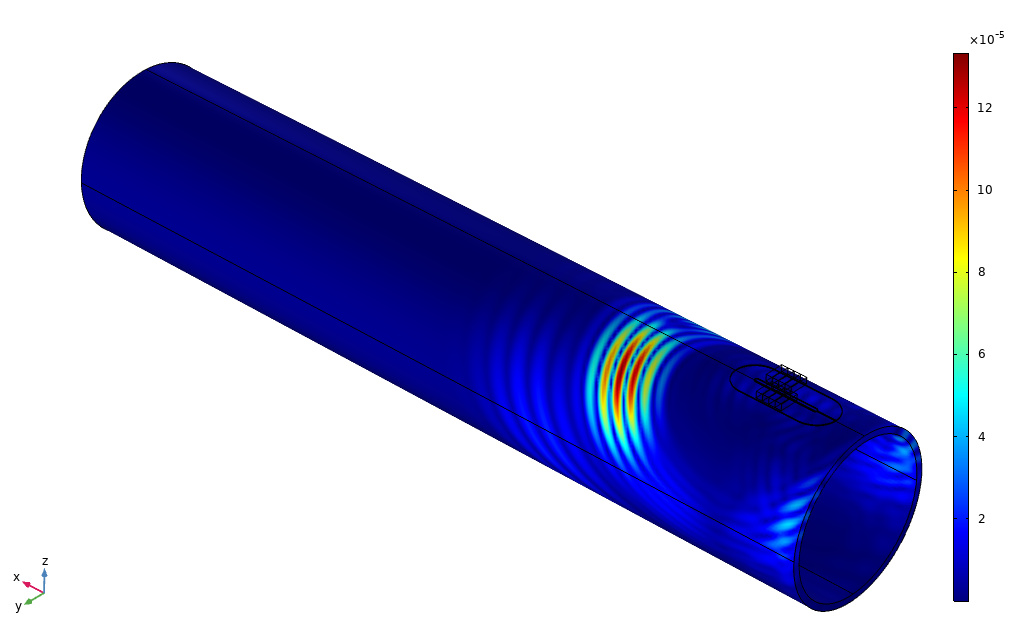 Large pipelines are utilized for a variety of applications in practically every industry. The pipe beneath the saddle support is the most vulnerable to corrosion, and since these pipes are working in severe environments, corrosion may occur that can result into wall thinning of pipe. The research focuses on the design and optimization of Staggered Electromagnetic Acoustic Transducers (EMATs) and the application of guided wave cut off property to determine the remnant thickness in order to analyze these corroded pipes under saddle support system.