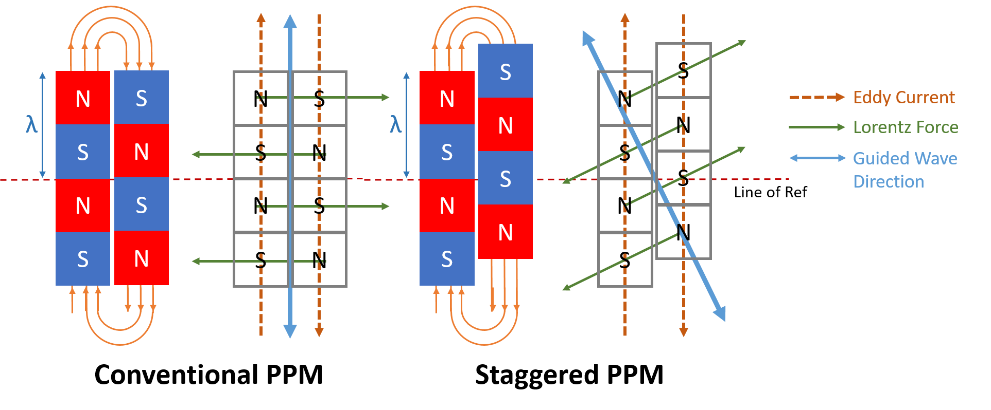 Large pipelines are utilized for a variety of applications in practically every industry. The pipe beneath the saddle support is the most vulnerable to corrosion, and since these pipes are working in severe environments, corrosion may occur that can result into wall thinning of pipe. The research focuses on the design and optimization of Staggered Electromagnetic Acoustic Transducers (EMATs) and the application of guided wave cut off property to determine the remnant thickness in order to analyze these corroded pipes under saddle support system.